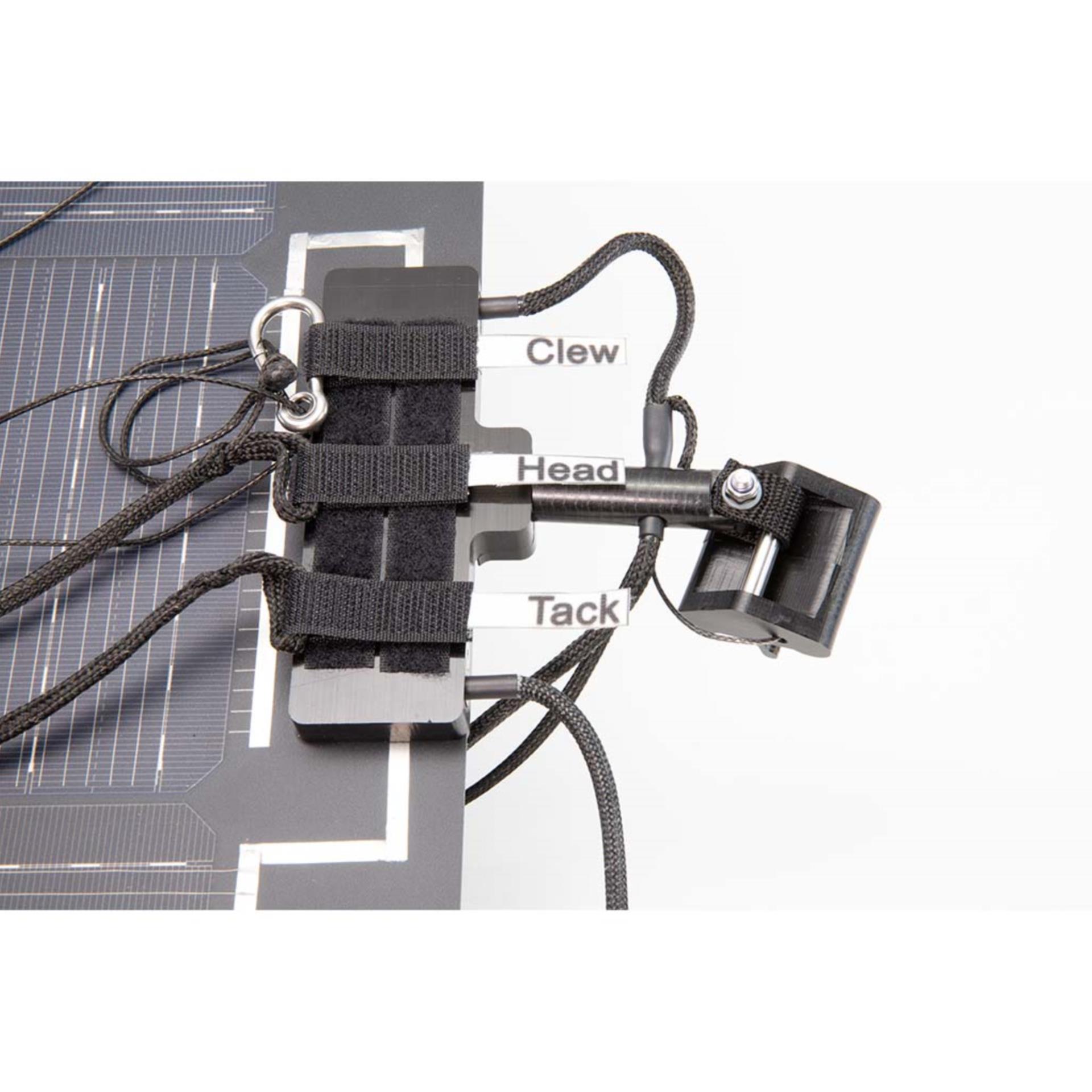 Durch die FLIN-Mastrutscher wird das Solarsegel bei Bedarf mit wenigen Handgriffen oberhalb des Großsegels in die Mastnut eingeklickt und mit dem Großfall wie ein Segel gehisst.