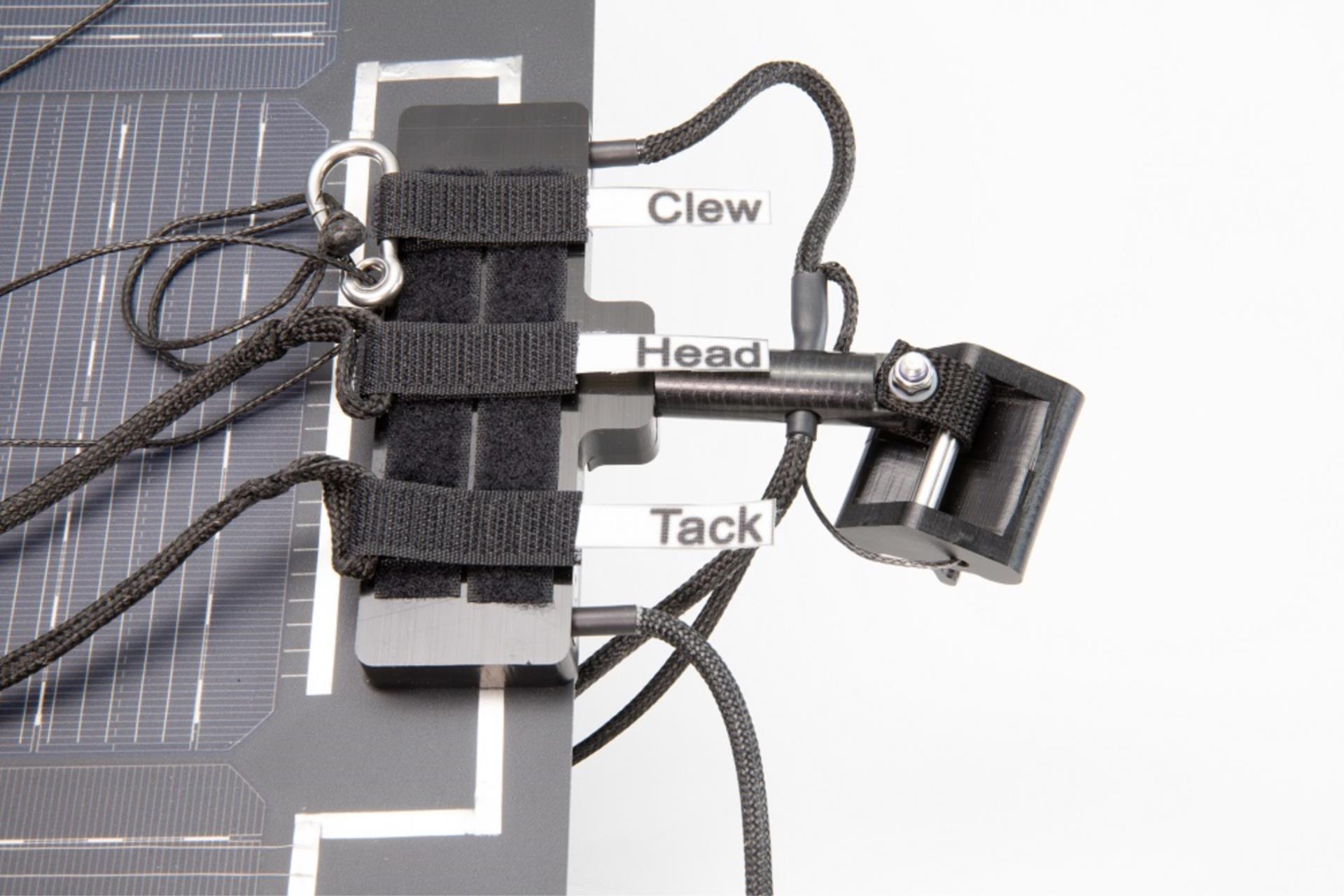 Durch die FLIN-Mastrutscher wird das Solarsegel bei Bedarf mit wenigen Handgriffen oberhalb des Großsegels in die Mastnut eingeklickt und mit dem Großfall wie ein Segel gehisst.