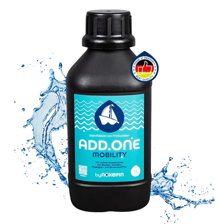 ADD.ONE Mobility von noxefin® bietet die sichere, nachhaltige und effektive Lösung. Das innovative Desinfektionsmittel entfernt bestehende Biofilme vollständig und verhindert deren Neubildung – ganz ohne aggressive Chemie. Die Basis ist eine Mischung aus Wasser, Natriumchlorid und aktivem Chlor, die sekundenschnell Krankheitserreger neutralisiert. Ideal für Frischwassertanks, Leitungen und Trinkwasseraufbereitung auf Booten, Schiffen und in mobilen Anwendungen.