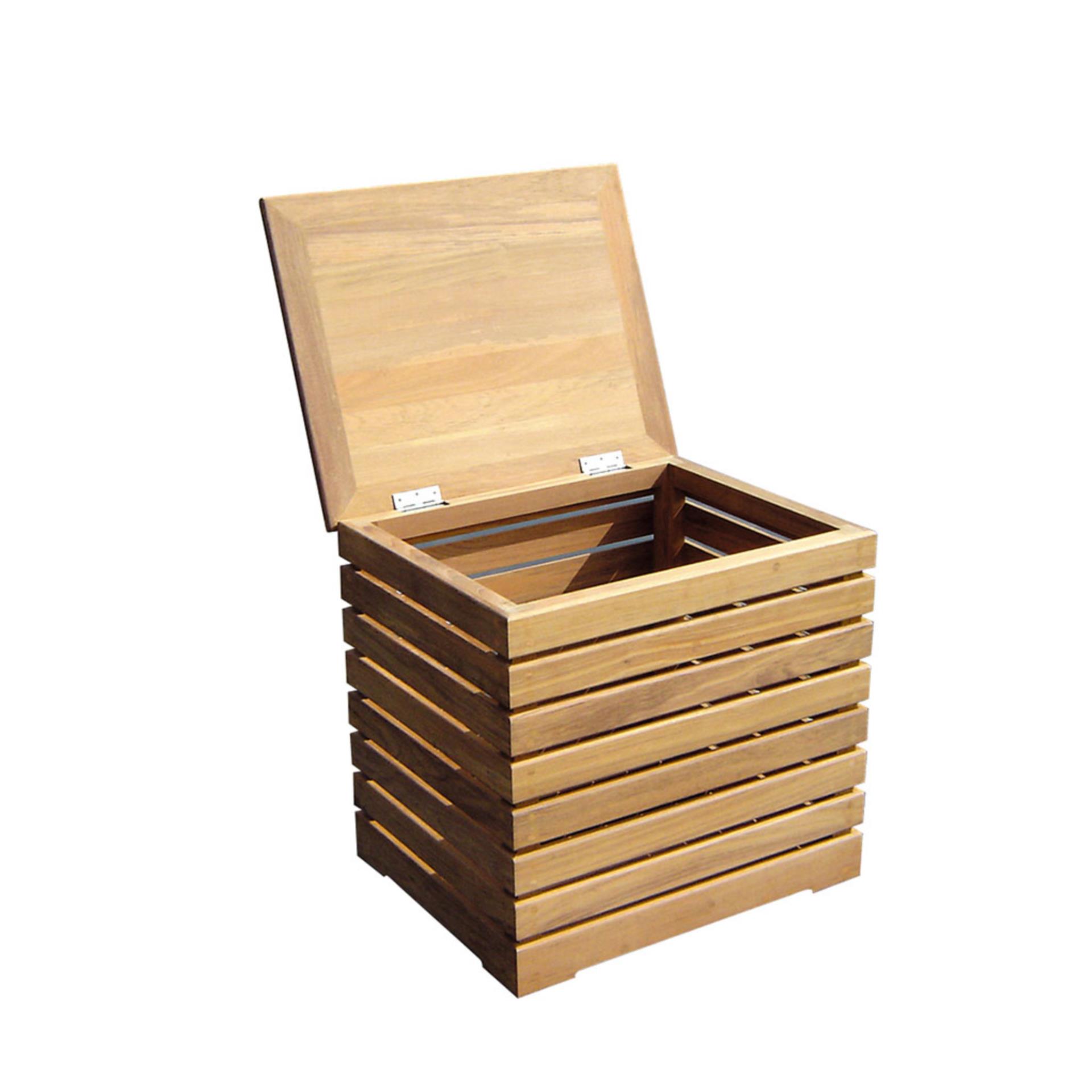 - ✔ Deckel mit massiven Teakdielen belegt