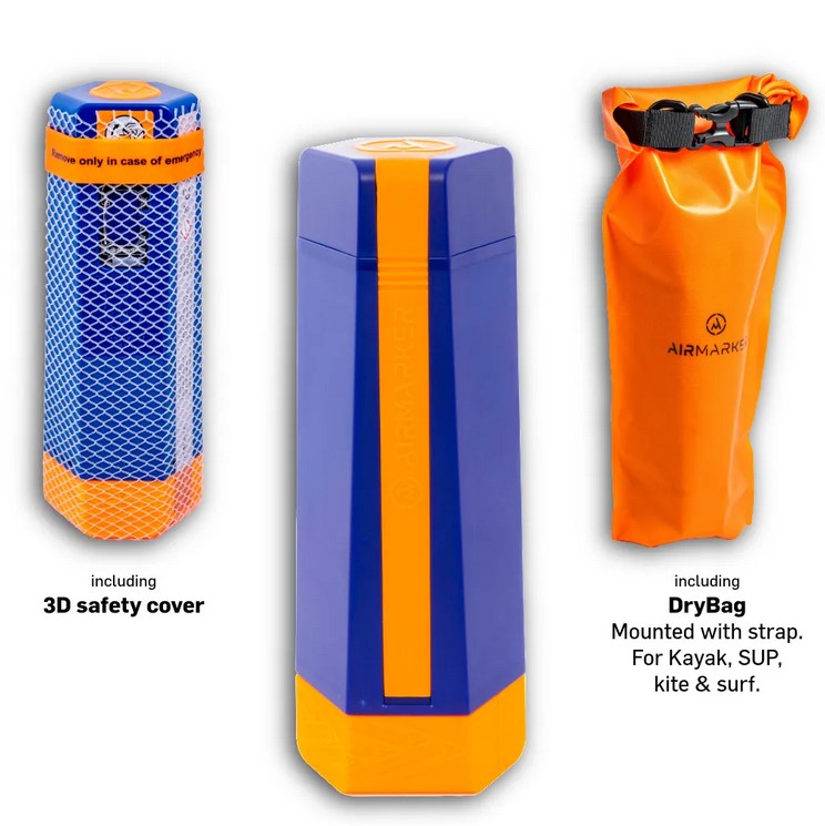 Der AirMarker R.Four wurde speziell für den Einsatz auf dem Wasser entwickelt und ergänzt jede Boots-, SUP- oder Wassersportausrüstung um ein hochwirksames, visuelles Notsignal. Dank seines kompakten Formats passt er problemlos in jede Tasche, Weste oder in den wasserdichten AirMarker Dry Bag, in dem er geliefert wird. Im Ernstfall ist der R.Four in Sekunden auslösebereit: Der leuchtend orange Signalballon steigt nach Aktivierung auf bis zu 5 Meter Höhe und macht bereits aus großer Entfernung unmissverständlich sichtbar, dass sofortige Hilfe benötigt wird.