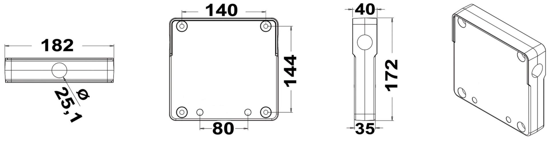 - Außenmaß: 182 x 172 x 40 mm