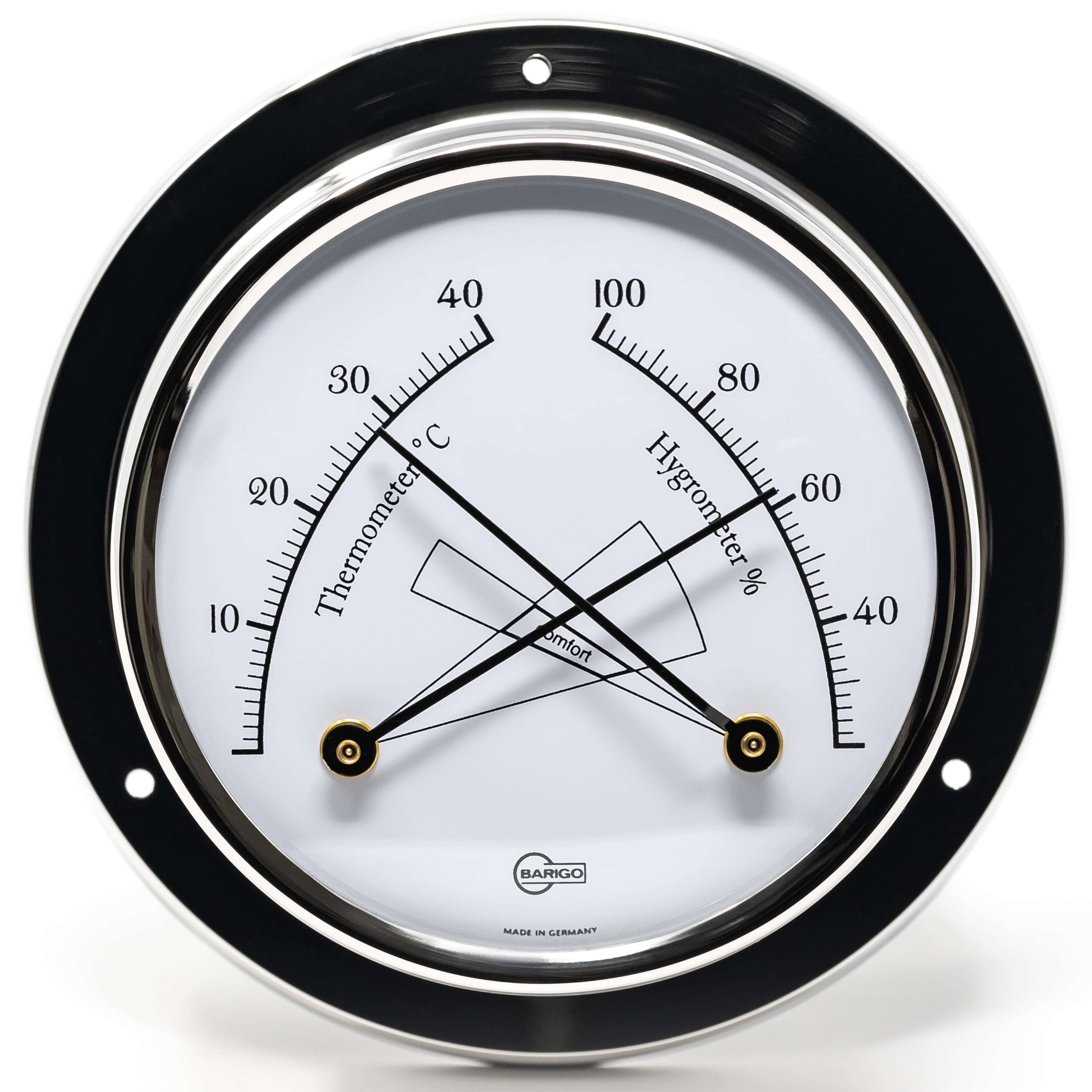 Als Teil der exklusiven BARIGO REGATTA-Serie lässt sich das Thermo-Hygrometer optimal mit einer passenden Quarzuhr oder einem Barometer im selben Design kombinieren – für ein einheitliches, hochwertiges Interieur mit echtem nautischen Charakter.