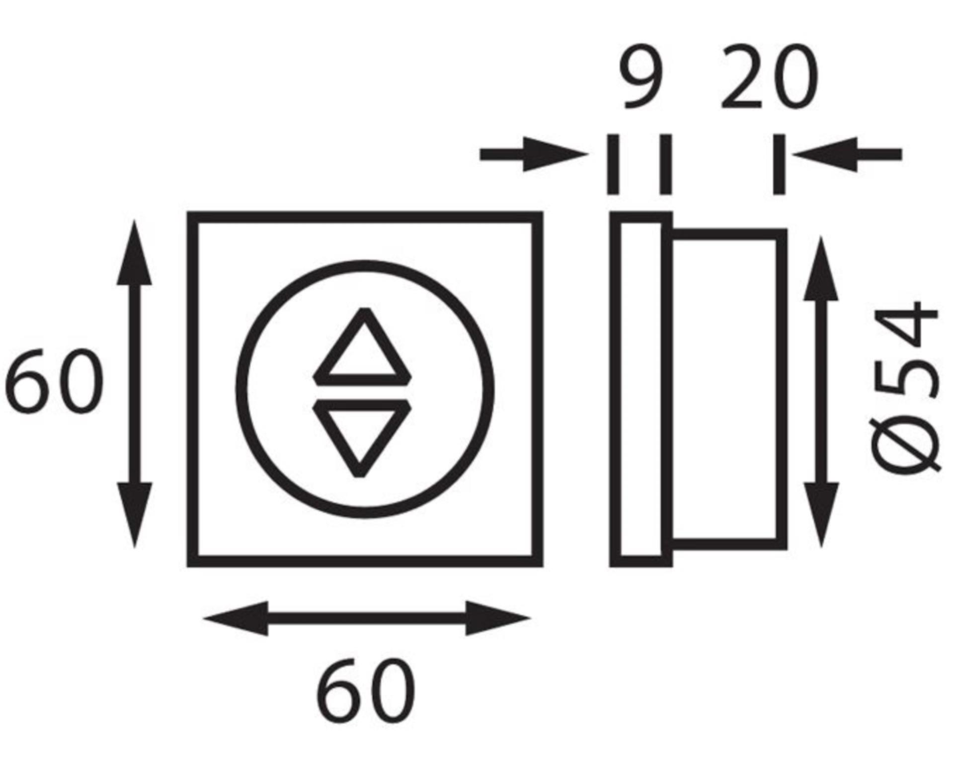 - Außenmaß 60 x 60 mm, Einbaumaß 52 mmø, Tiefe 20 mm
