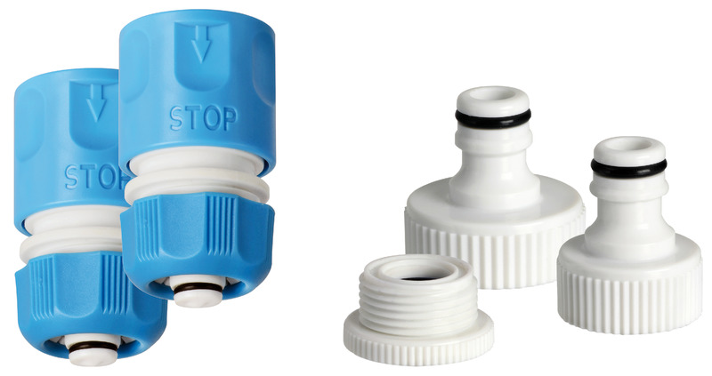 Die regelbare Spritzwasserpistole mit Schnappverschluss ermöglicht eine präzise Dosierung des Wasserdrucks – von sanftem Spülen bis zu kräftigem Strahl für hartnäckigen Schmutz. Dank der drei mitgelieferten Schnellanschlüsse lässt sich das Set mühelos an verschiedene Wasserhähne anschließen.