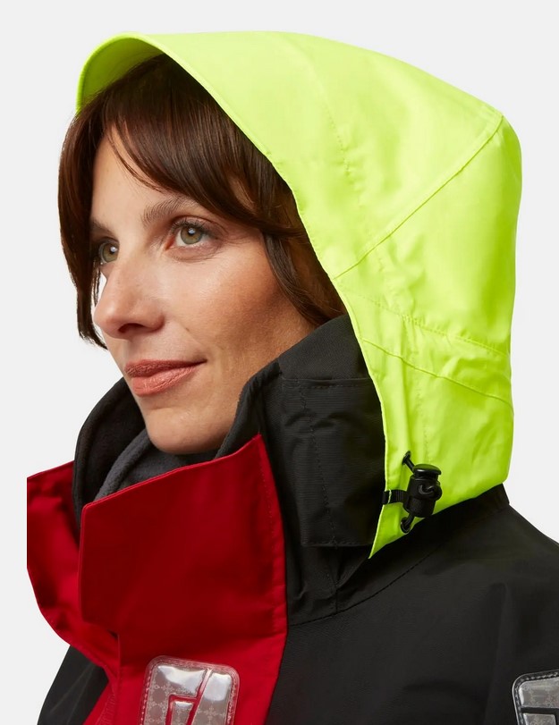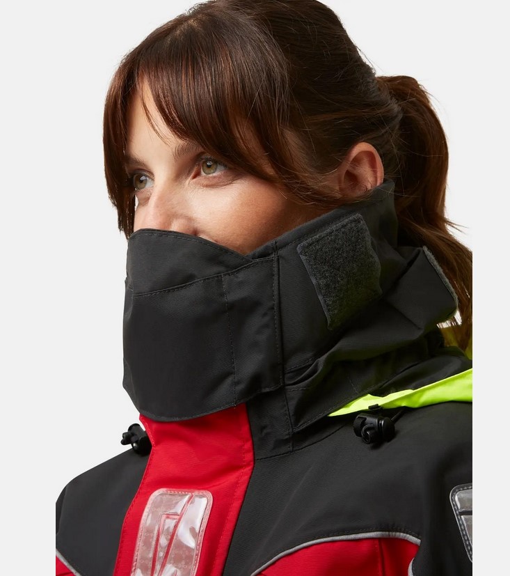 Für maximale Sicherheit auf See ist die Jacke mit großen Reflektoren und zusätzlichen reflektierenden Elementen ausgestattet, die auch bei schlechten Lichtverhältnissen beste Sichtbarkeit gewährleisten. Der verstellbare Hochkragen mit 3D-Gesichtsmaske bietet effektiven Schutz vor Wind und Spritzwasser, während die mehrfach verstellbare Kapuze in leuchtendem Neongelb mit stabilem Schild und Wasserablaufrinne optimalen Regenschutz liefert.