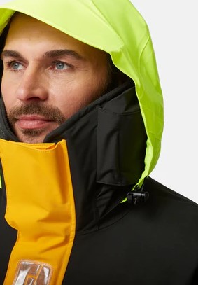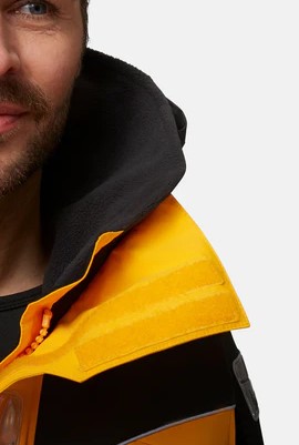 Für maximale Sicherheit auf See ist die Jacke mit großen Reflektoren und zusätzlichen reflektierenden Elementen ausgestattet, die auch bei schlechten Lichtverhältnissen beste Sichtbarkeit gewährleisten. Der verstellbare Hochkragen mit 3D-Gesichtsmaske bietet effektiven Schutz vor Wind und Spritzwasser, während die mehrfach verstellbare Kapuze in leuchtendem Neongelb mit stabilem Schild und Wasserablaufrinne optimalen Regenschutz liefert.