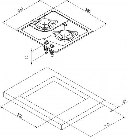 - Brennerleistung: 2 mittlere Brenner a 1900 W