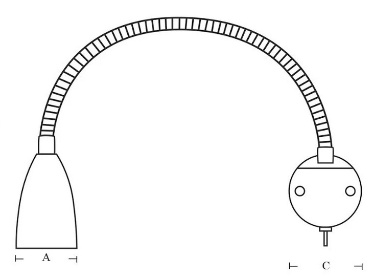 - Maße: A = 35 mm, C = 45 mm, Flexarm = 250 mm