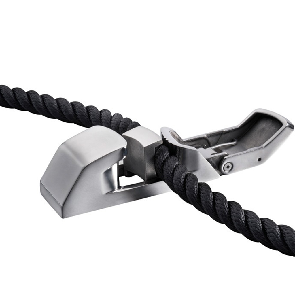 Das integrierte Sofort-Klemmsystem ermöglicht ein blitzschnelles und temporäres Fixieren von Festmacherleinen mit einem Durchmesser von 20–30 mm, ohne Knoten oder kompliziertes Belegen. Perfekt geeignet für Situationen, in denen es auf schnelle Reaktion ankommt: beim Anlegen, Manövrieren, Schleusen oder kurzfristigen Stopps.