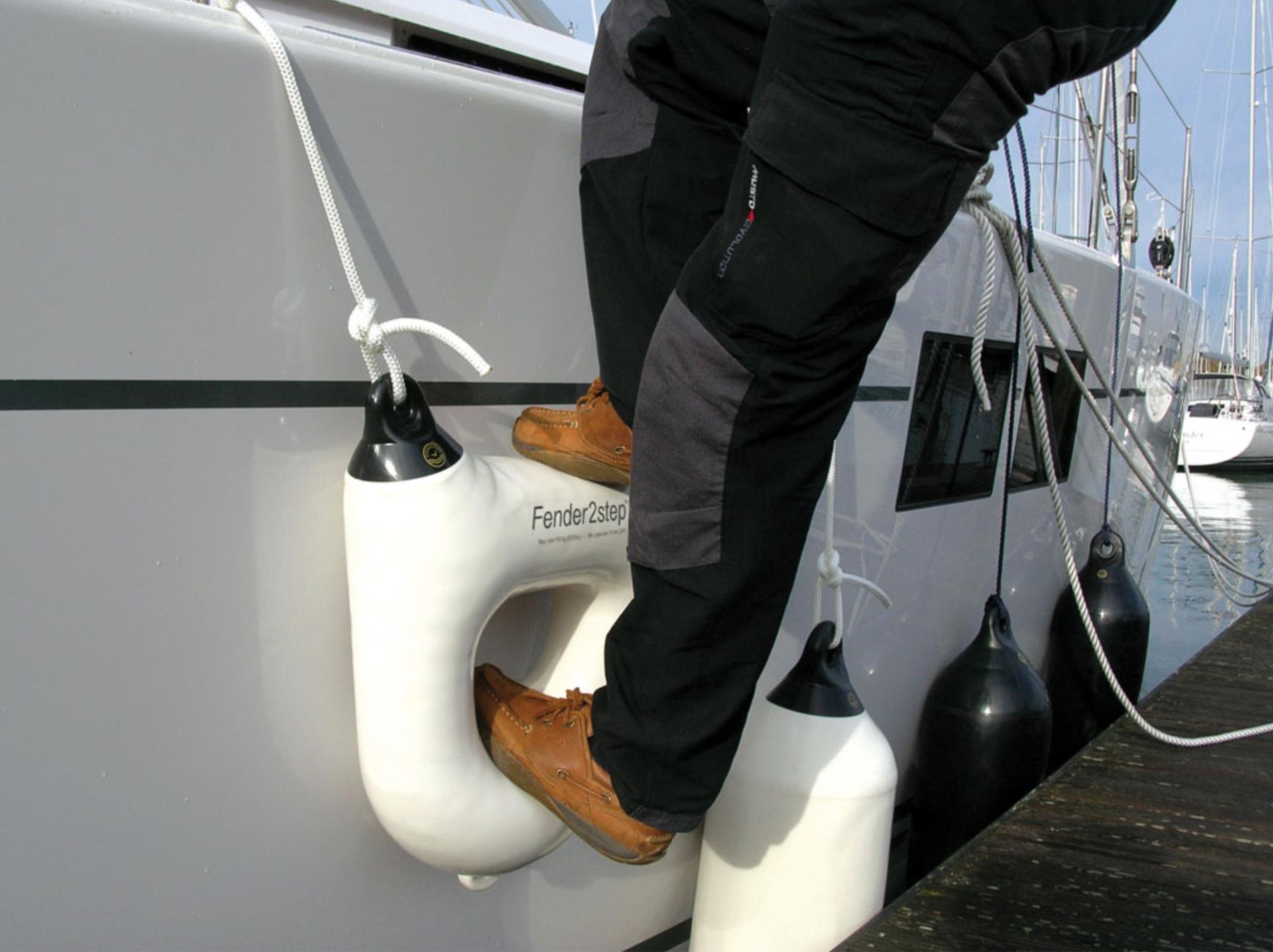 Der FenderStep ist die innovative Kombination aus Fender und Einstiegshilfe, die speziell für das Anlegen hochbordiger Schiffe entwickelt wurde. Er erleichtert das Festmachen an Stegen, schützt Badeleitern und Bootsrümpfe vor Beschädigungen und sorgt für mehr Sicherheit und Komfort bei jedem Anlegemanöver.