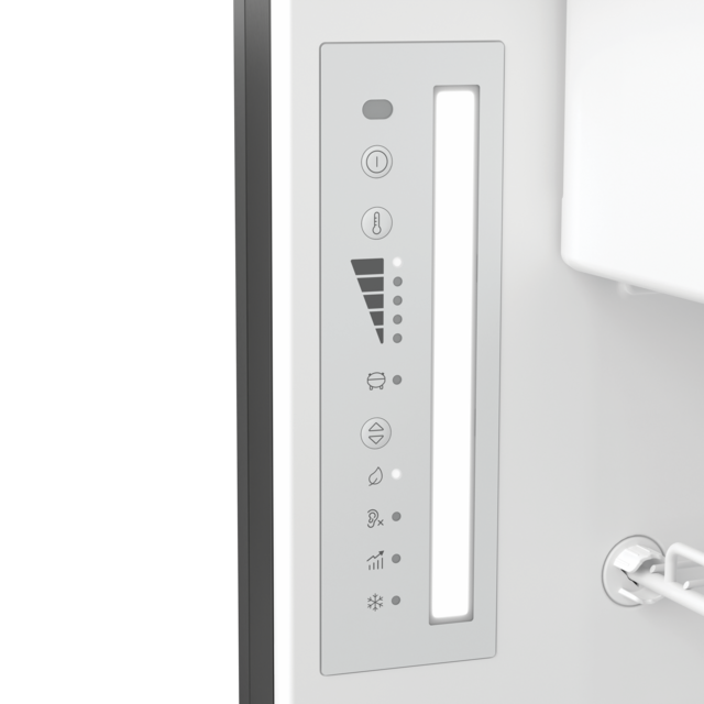 - Benutzerfreundliches Bedienpanel, Bündig in die Geräteoberfläche integriert, mit LED-Leuchtenleiste