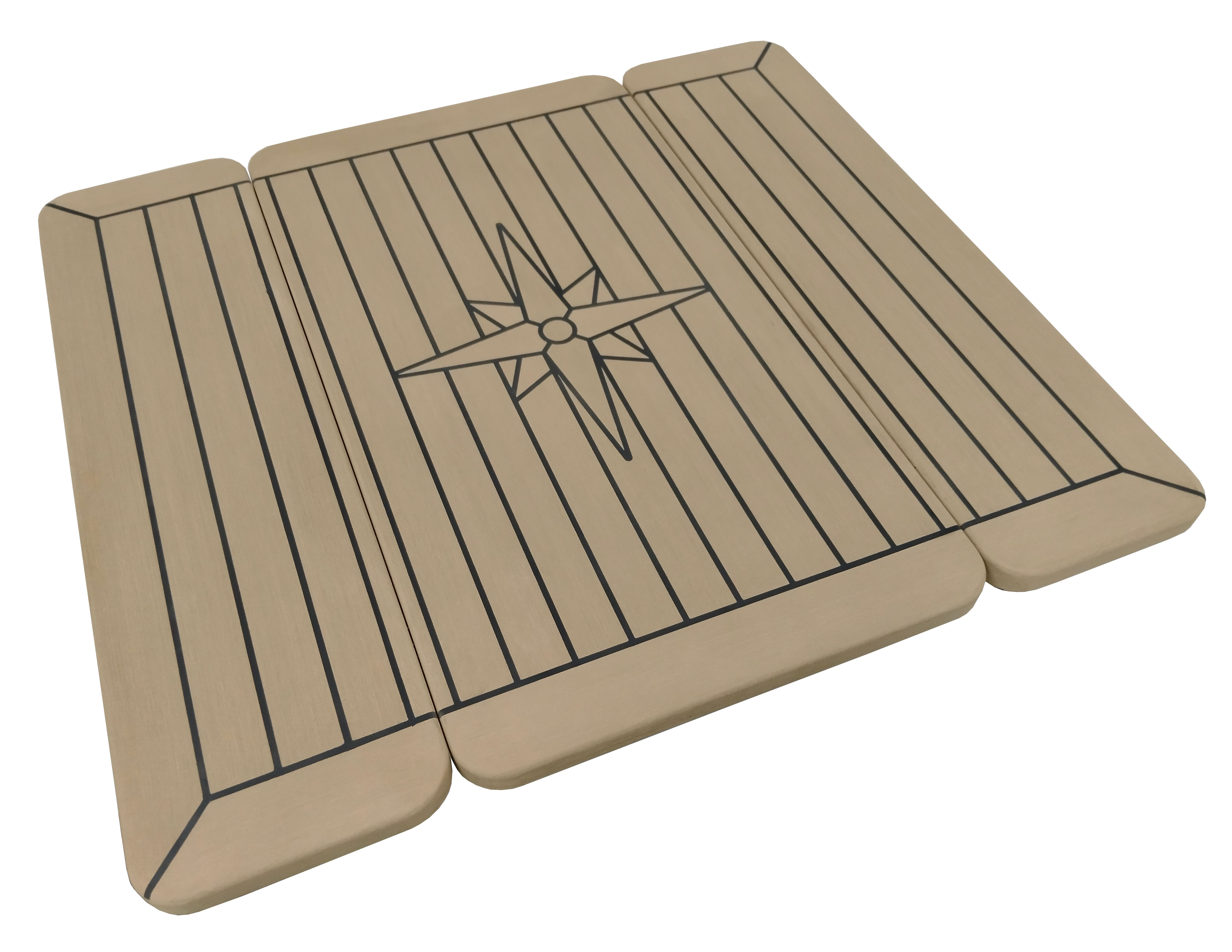 Die Tischplatte ist formstabil, langlebig und resistent gegenüber Feuchtigkeit, Salzwasser und Temperaturschwankungen. Dadurch eignet sie sich perfekt für den dauerhaften Einsatz im Cockpit, im Salon oder auf Deck. Die klassische Soft-Optik verleiht dem Boot eine hochwertige, warme Ausstrahlung und passt zu modernen wie klassischen Yachten gleichermaßen.