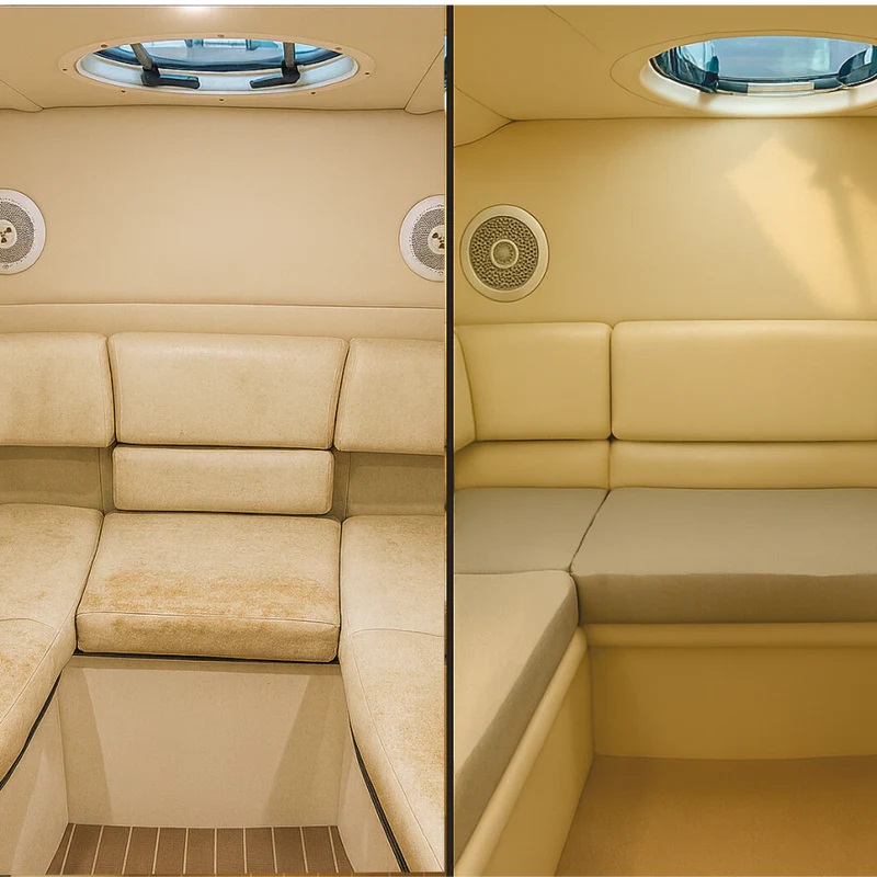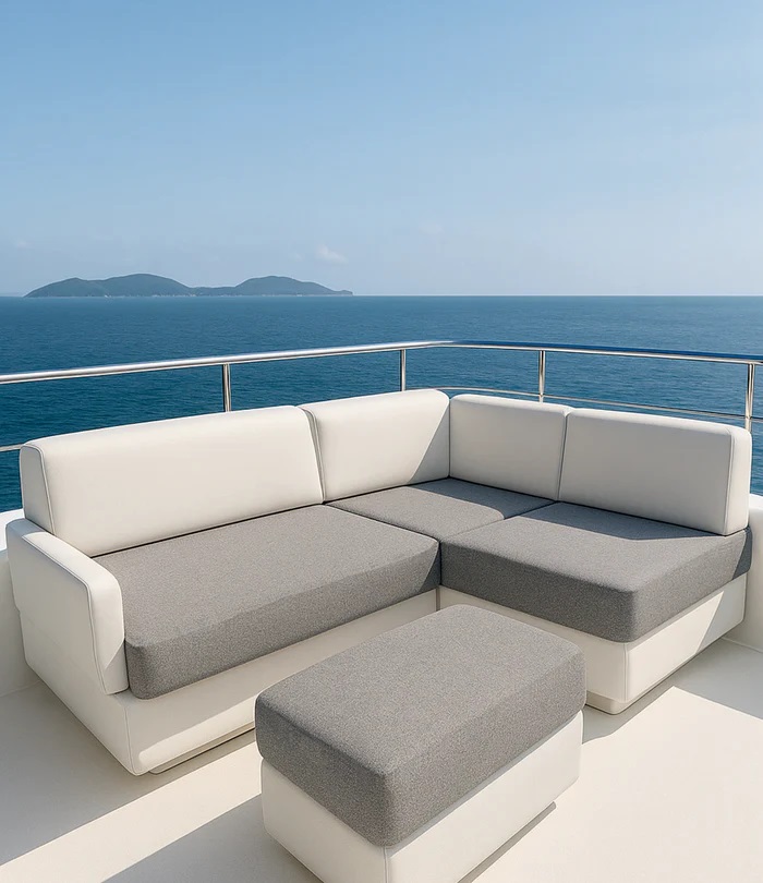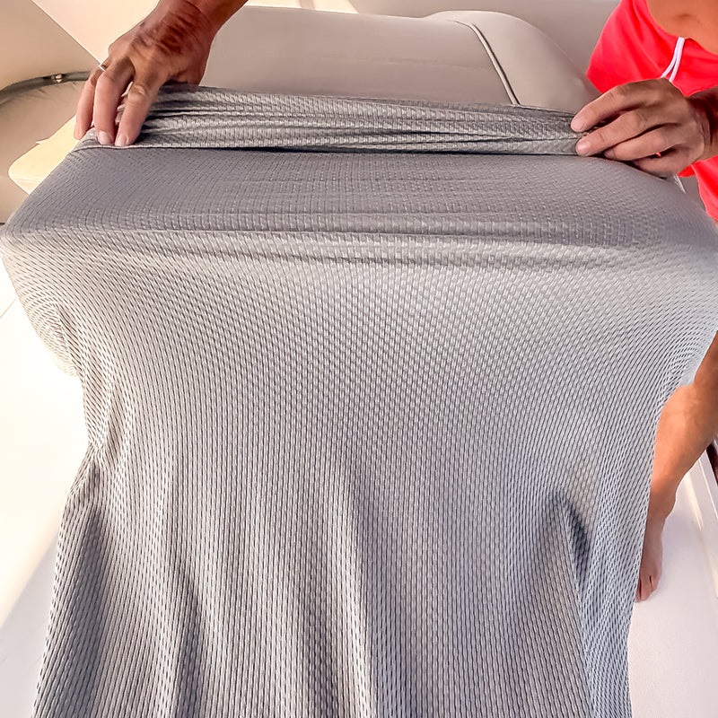 Der Fenderdesign FlexiCover verleiht Yachtpolstern im Handumdrehen ein modernes, frisches und absolut nahtloses Erscheinungsbild. Dank der innovativen Rundstricktechnik ist das Material über 100 % dehnbar, wodurch es sich faltenfrei und ohne störende Nähte oder Biesen an nahezu jede Polsterform anschmiegt – ob im Cockpit, Salon oder auf Deck.