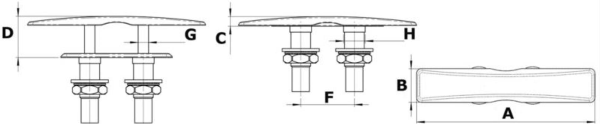 - Versenkbares Design: Die flache Bauweise ermöglicht eine bündige Montage, wodurch der Klampe beim Nichtgebrauch unsichtbar wird und die Oberfläche Ihres Bootes nicht stört.
