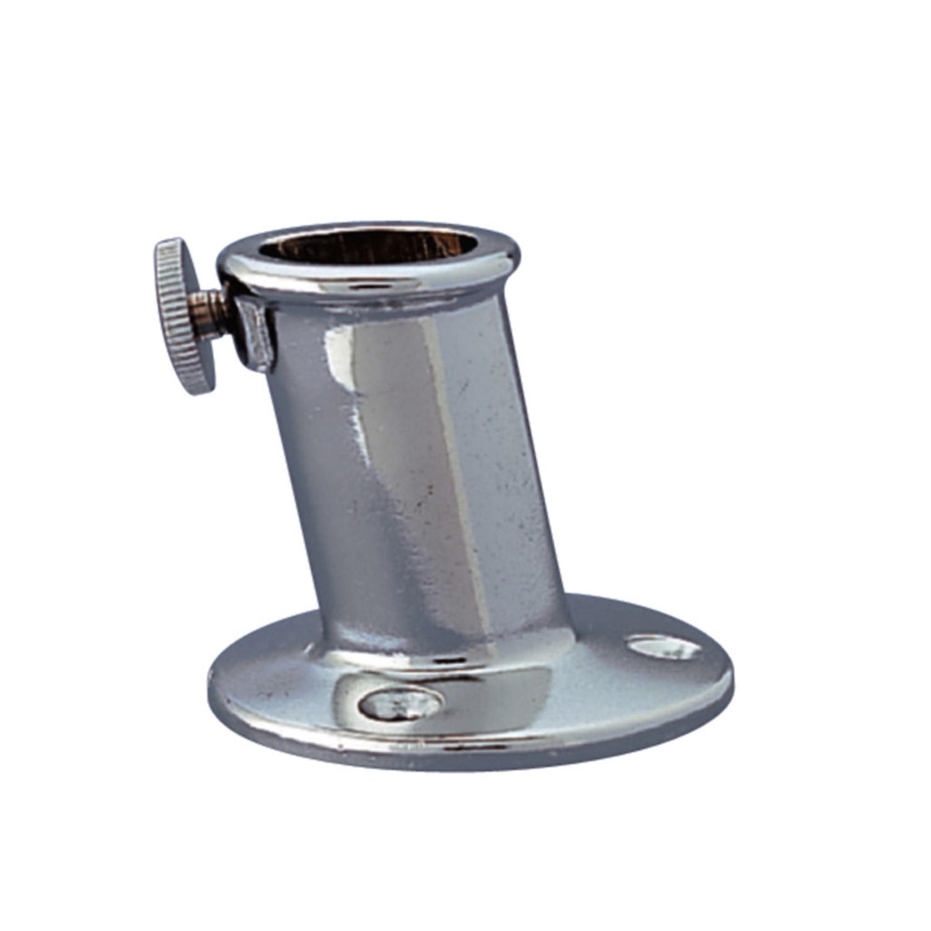 Dieser Flaggenstockhalter aus massivem Messing ist die perfekte Lösung für die stilvolle Befestigung von Flaggenstöcken an Bord. Mit einem Innendurchmesser von 20 mm eignet er sich hervorragend für gängige Flaggenstöcke und bietet dank Feststellschraube sicheren Halt auch bei starkem Seegang.