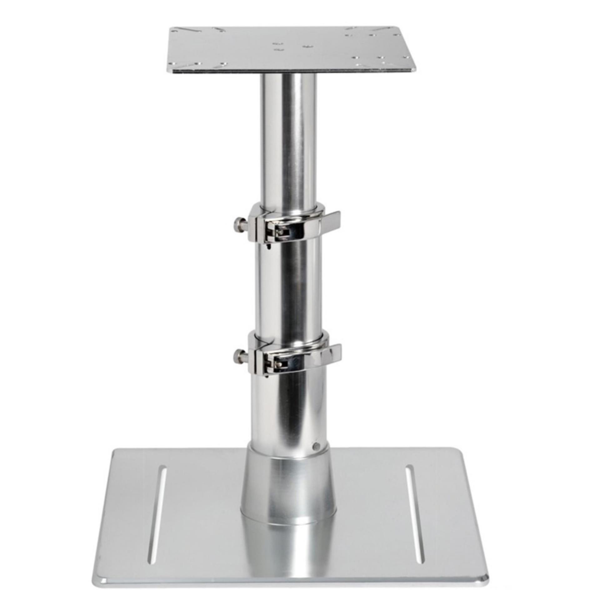 Der Teleskop Tischfuß Modell Giant ist die perfekte Lösung für höhenverstellbare Tische an Bord von Booten und Yachten. Gefertigt aus eloxiertem und hochglanzpoliertem Leicht-Aluminium, vereint er Stärke, Leichtigkeit und Korrosionsbeständigkeit. Dank der integrierten Gasfeder lässt sich der Tisch mühelos in die gewünschte Höhe verstellen. Die trio-teleskopische Funktion ermöglicht eine flexible und stabile Anpassung der Tischhöhe. Eine Bodenlochung zur Befestigung ist nicht erforderlich, was die Montage deutlich erleichtert.