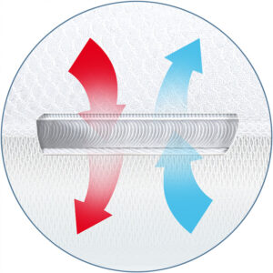 Die Oberseite besteht aus 10 mm GISATEX® DRYWEAVE® Abstandsgewirke, während die Unterseite aus 8 mm atmungsaktivem GISATEX® Abstandsgewirke gefertigt ist. Diese Materialien gewährleisten eine permanente Luftzirkulation und verhindern Feuchtigkeitsstau. Der Kern des Kissens enthält eine thermoregulierende Füllung aus 100 % PES Klima-Hohlfaser, die einen angenehm weichen Griff bietet und individuell entnommen oder angepasst werden kann.