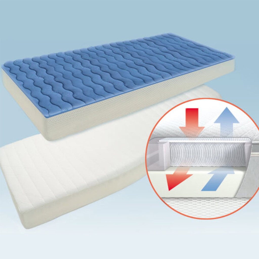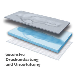 Die Konstruktion besteht aus 20 mm 3mesh Abstandsgewirke, hochwertigem Kaltschaum und einem atmungsaktiven gisamed® Doppeltuchbezug mit antiallergischer Klimafaser. Ergänzt wird das System durch eine Polsterunterlage aus luftdurchlässigem DRYWEAVE®, die eine permanente Unterlüftung ermöglicht. So wird Feuchtigkeit effektiv reduziert, Staunässe vermieden und die Lebensdauer der Matratze deutlich erhöht.