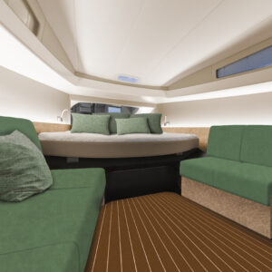 Neben seiner edlen Optik überzeugt der Polsterstoff durch extreme Scheuerfestigkeit, Pillingfreiheit und hautsympathische Eigenschaften. Das Material ist klimaausgleichend, atmungsaktiv und sorgt für angenehmen Sitz- und Liegekomfort – auch bei wechselnden Temperaturen auf See. Zudem ist GISATEX® AMAFENA problemlos bei 40 °C waschbar und damit besonders pflegeleicht.