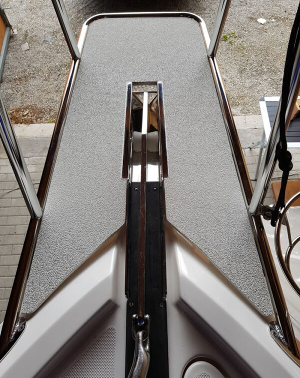 Das hochwertige PVC-Material ist formanpassungsfähig, lässt sich leicht verarbeiten und bietet durch seine spezielle Oberfläche eine exzellente Rutschfestigkeit, auch bei Nässe. Gleichzeitig schützt der Belag das Deck zuverlässig vor Feuchtigkeit und eindringendem Wasser, was ihn zu einer dauerhaft haltbaren und pflegeleichten Lösung für verschiedenste Deckbereiche macht.