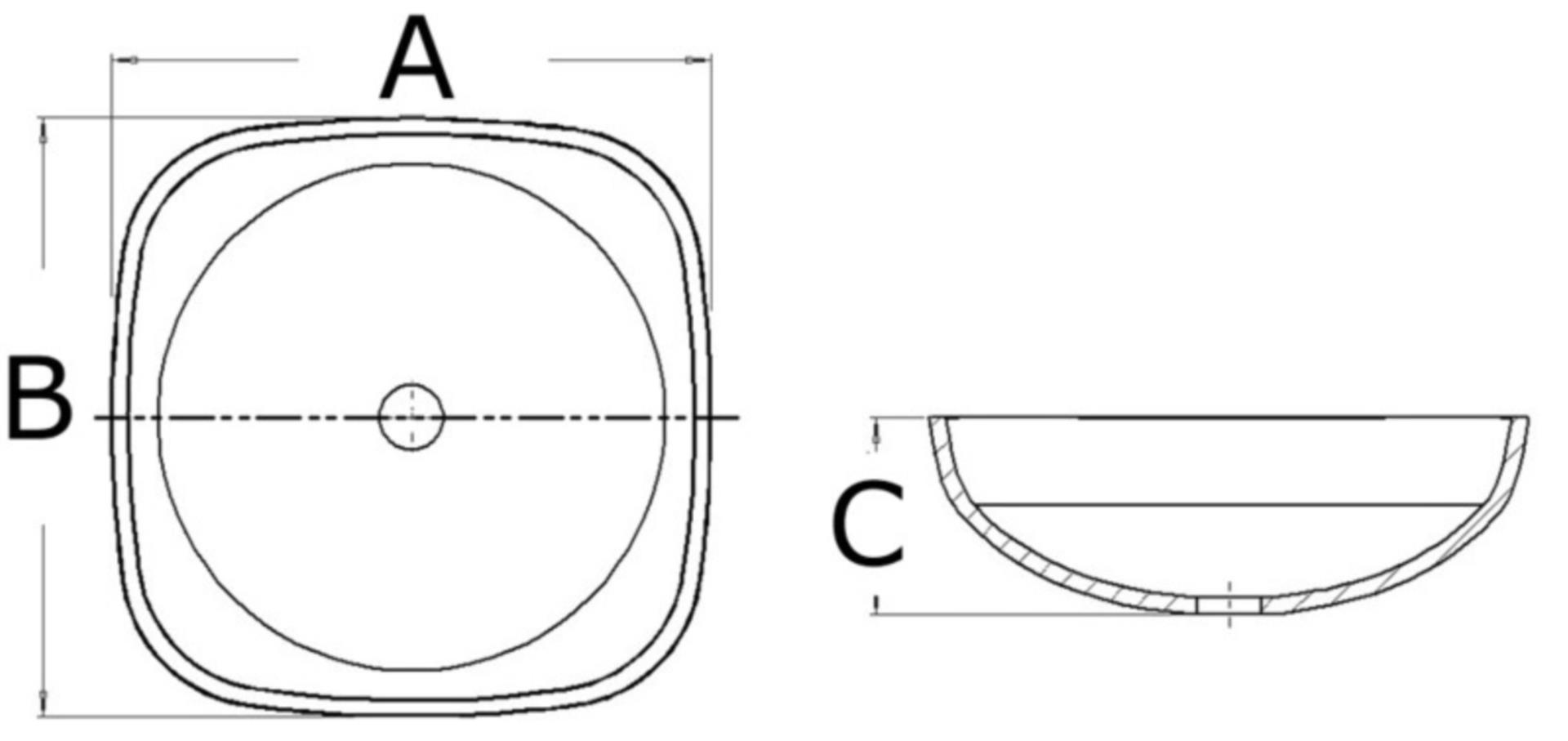 - Becken: 420 x 420 mm