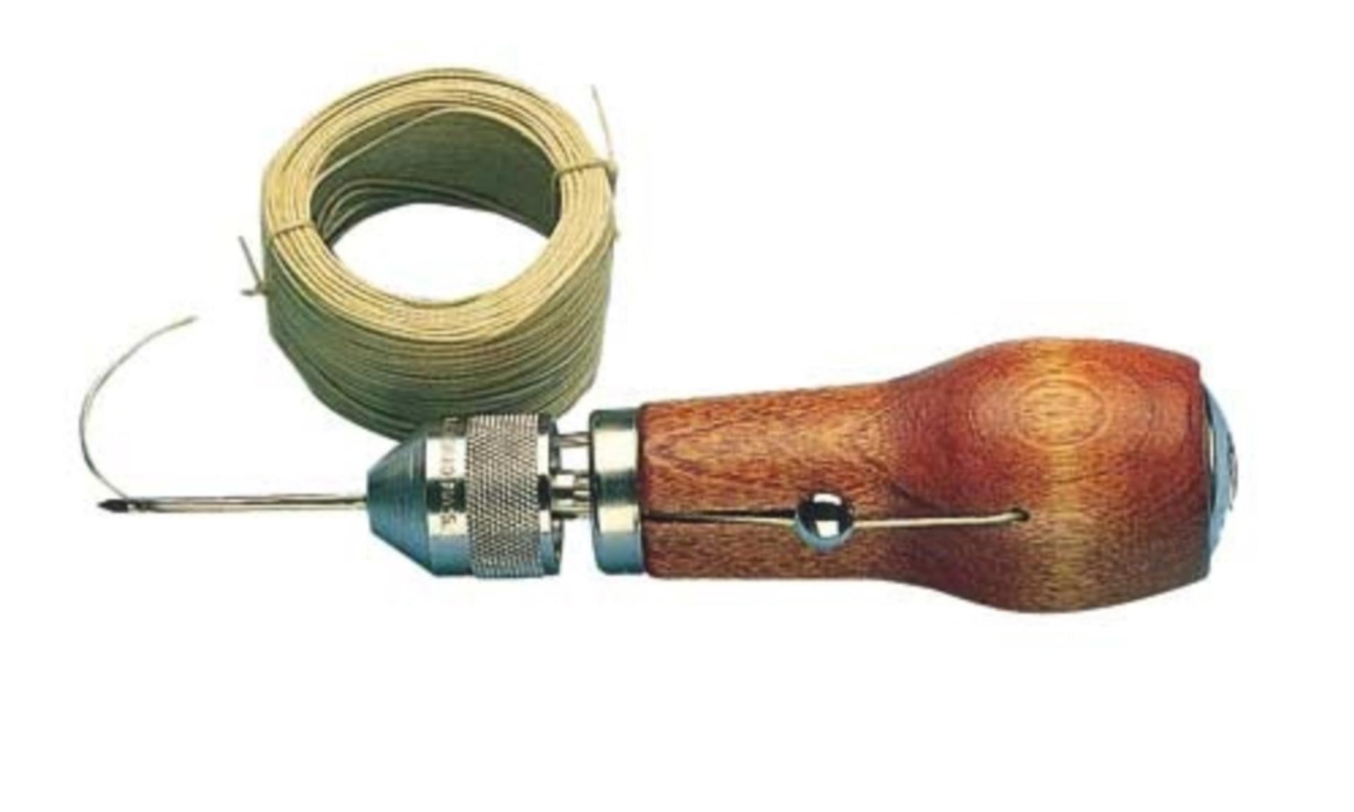 Zum Nähen von Leder, Segeltuch und ähnlichen Materialien. Die Ahle hat eine Spule mit Garn im hohlen Griff. Wenn die Ahle nicht gebraucht wird, können die Nadeln verletzungsicher und unverlierbar befestigt werden. Der Ahle liegt eine leicht verständliche Bedienungsanleitung bei.