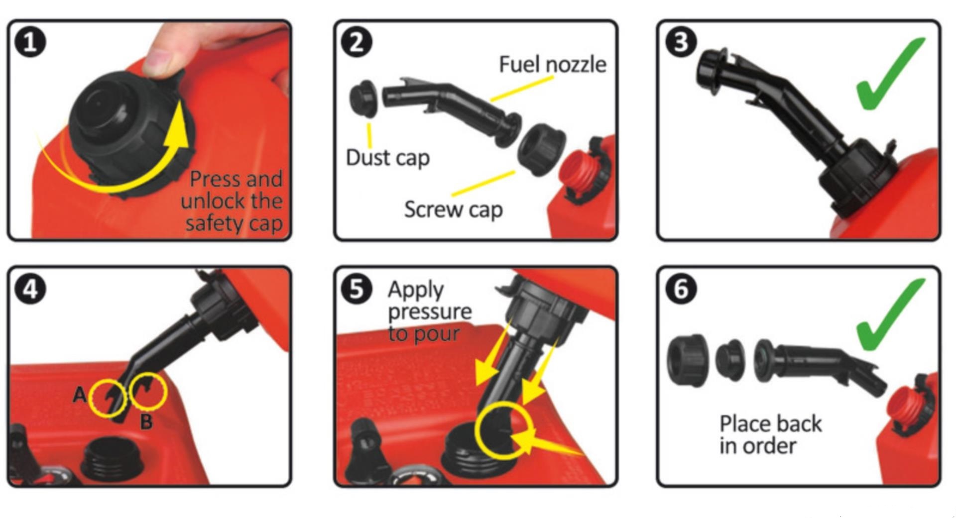 Der Heavy Duty Kanister bietet höchste Widerstandsfähigkeit und ist ideal für den sicheren Transport von Benzin, Diesel und anderen Treibstoffen. Mit einem kindersicheren Verschluss und einer speziell entwickelten Düse, die bei Nichtverwendung im Innern verstaut wird, bietet der Kanister ein Höchstmaß an Sicherheit und Komfort. Das Verschlussventil ermöglicht ein kontrolliertes Auslaufen der Flüssigkeit, sodass der Kanister erst dann austritt, wenn die Düse im Einfüllstutzen steckt. Zudem sorgt die Lüftungsfunktion der Düse für einen gleichmäßigen, spritzfreien Auslauf.