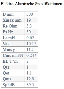 Mit einem Durchmesser von 300 mm (12 Zoll) und einer Dauerbelastbarkeit von 500 W ist dieser Subwoofer in 2- oder 4-Ohm-Single-Voice-Coil-Versionen erhältlich und bietet vielseitige Einsatzmöglichkeiten.