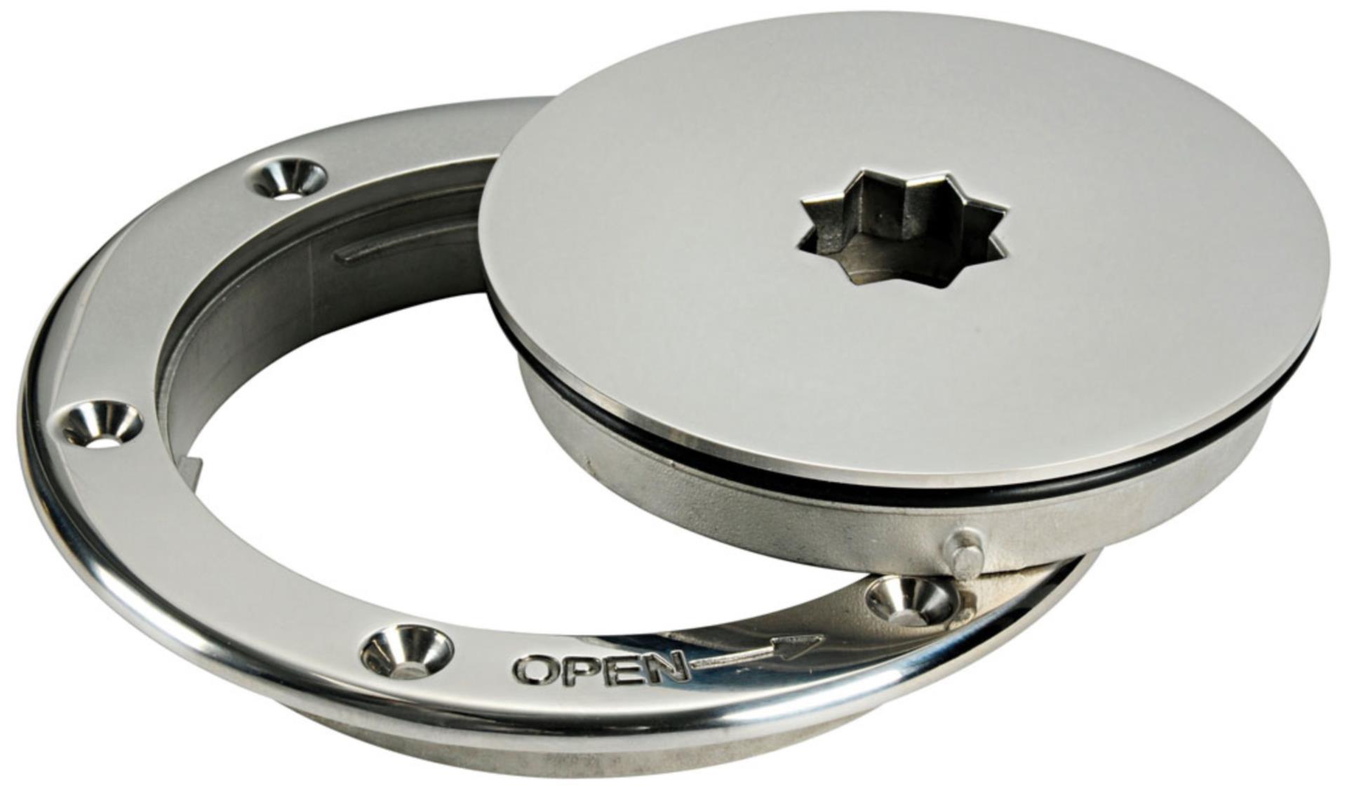 Die Inspektionsluke lässt sich mit nur einer 1/4-Drehung öffnen, was eine schnelle und einfache Handhabung ermöglicht. Dies ist besonders praktisch in Notfallsituationen, in denen jede Sekunde zählt. Der Öffnungsmechanismus ist so gestaltet, dass er mühelos mit einer Winschkurbel bedient werden kann (nicht mitgeliefert).