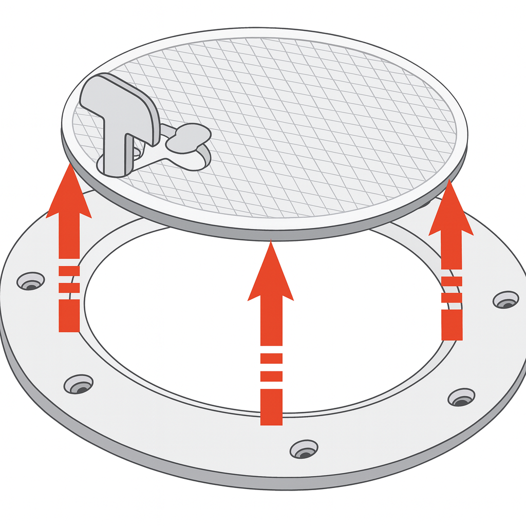 Die Inspektionsluke ist wasserdicht und schützt den darunter liegenden Bereich vor Feuchtigkeit und Wasserschäden. Dies macht sie zur perfekten Wahl für maritime Anwendungen, bei denen der Schutz vor Wasser von entscheidender Bedeutung ist.
