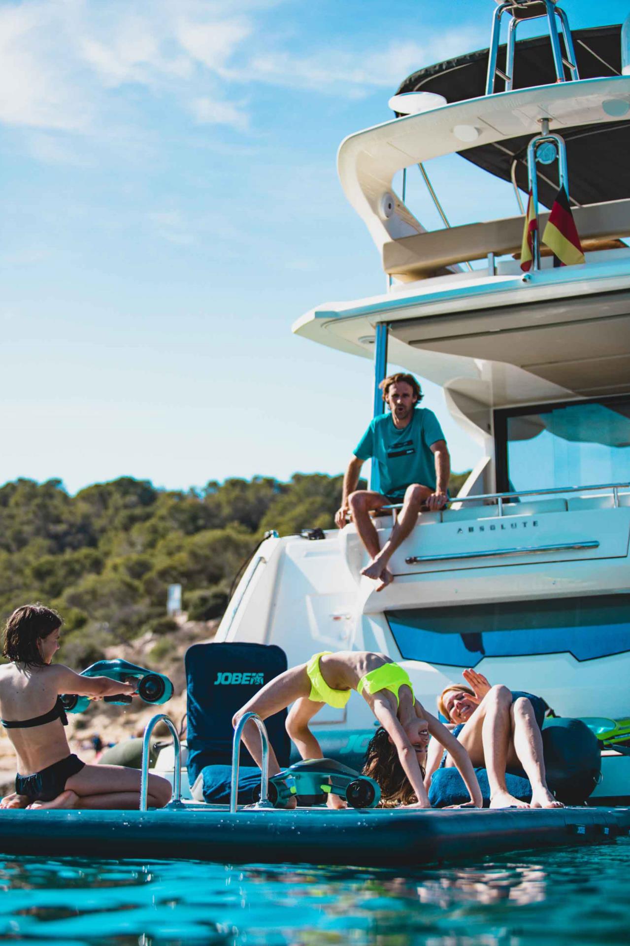 Schaffe eine einzigartige Spielwiese für die ganze Familie – ideal zum Sonnenbaden, Yoga, Herumspielen oder zum Andocken von Jetskis und SUPs.
