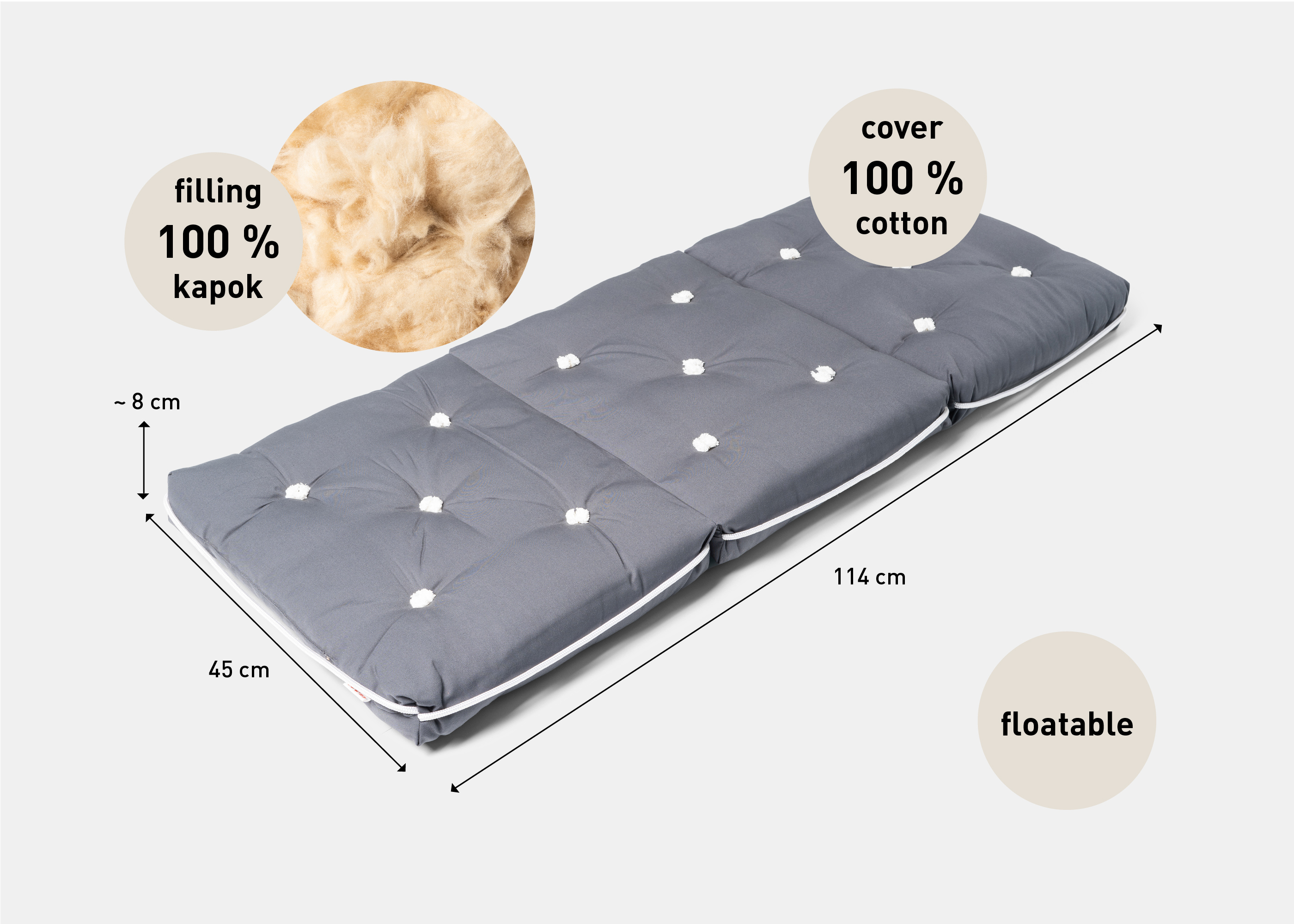 - Füllung: Kapok – eine natürliche, hypoallergene und nachhaltige Faser