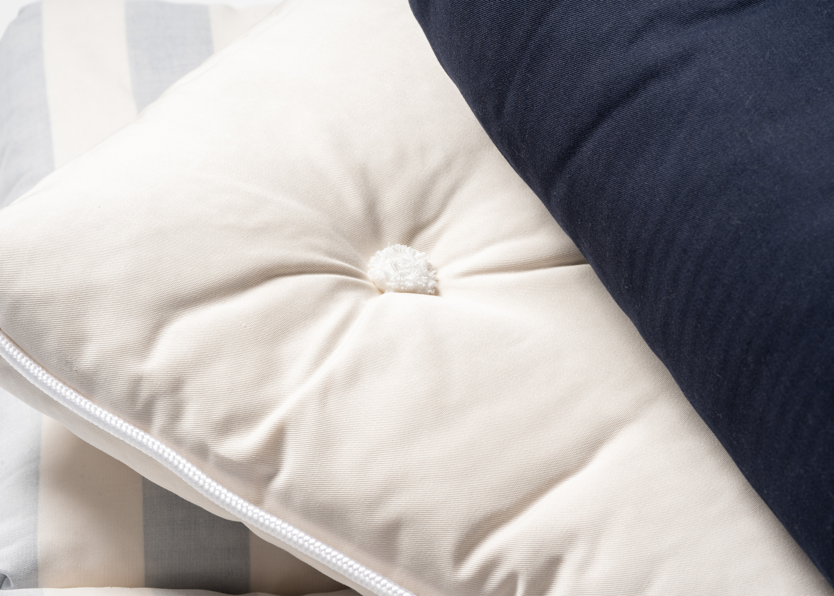 Dank der wasserabweisenden Eigenschaften von Kapok bleiben die Kissen auch bei Spritzwasser trocken und bequem.