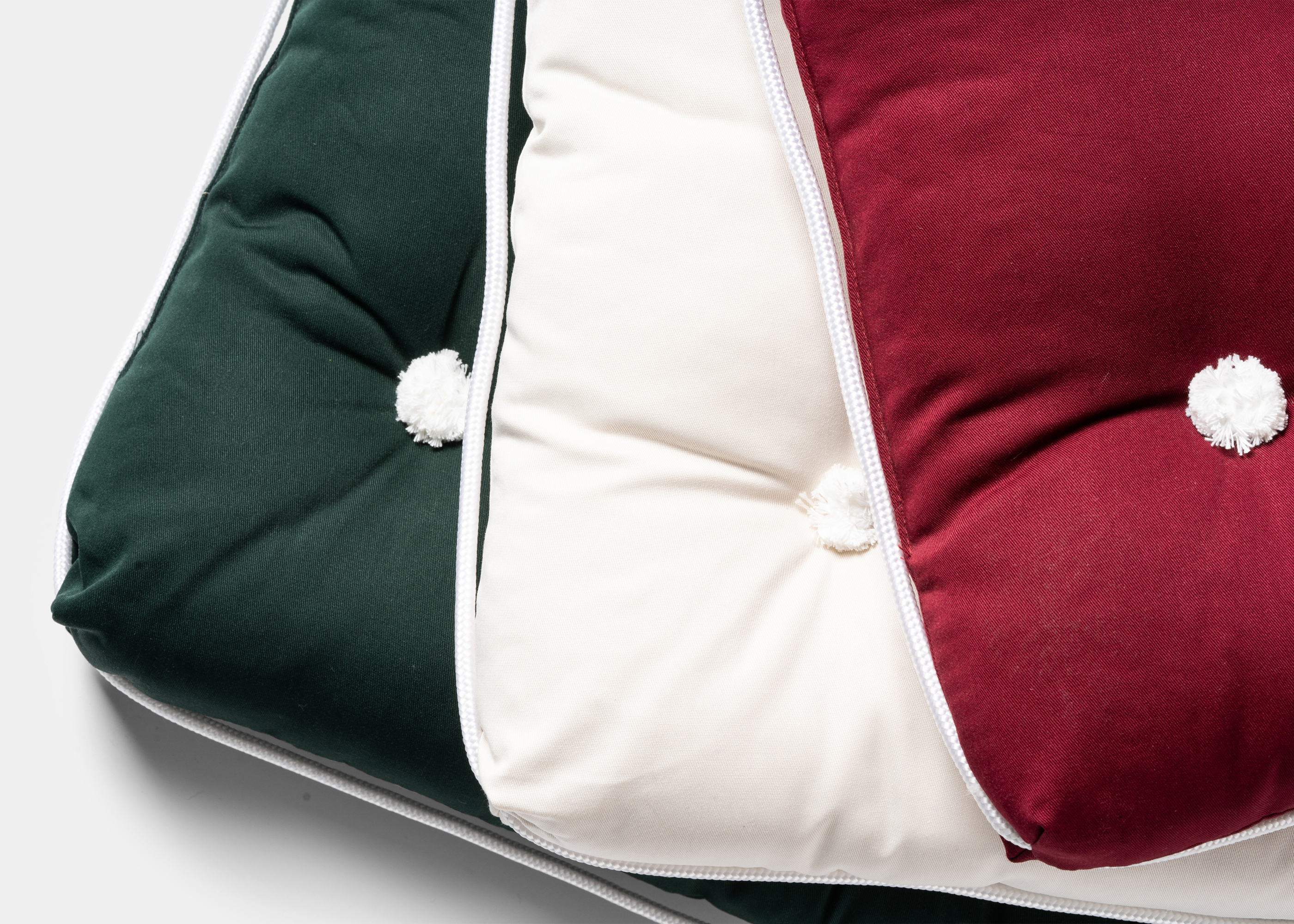 Dank der wasserabweisenden Eigenschaften von Kapok bleiben die Kissen auch bei Spritzwasser trocken und bequem.