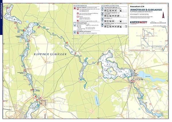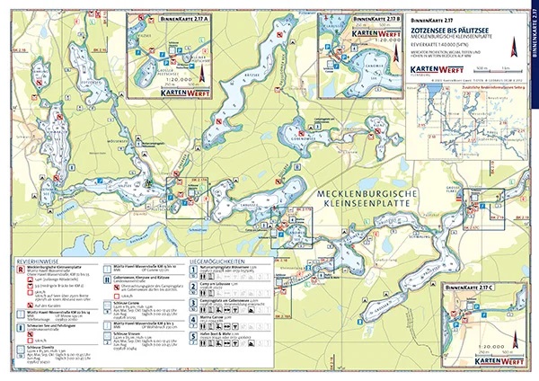 Der Kartenwerft Binnen-Atlas 2 ist der perfekte Begleiter für Bootsfahrer in der Mecklenburgischen Seenplatte. Mit einem Maßstab von 1:40.000 umfasst er alle schiffbaren Wasserstraßen dieser beliebten Region und bietet eine präzise Grundlage für Ihre Törnplanung.