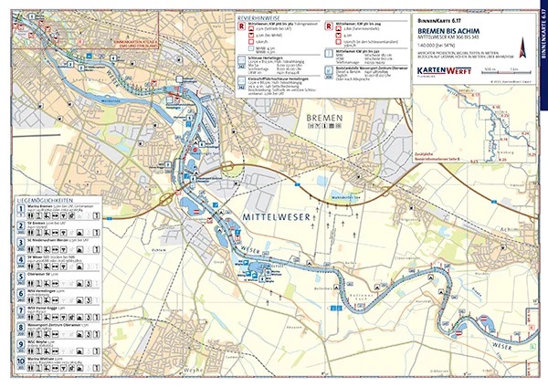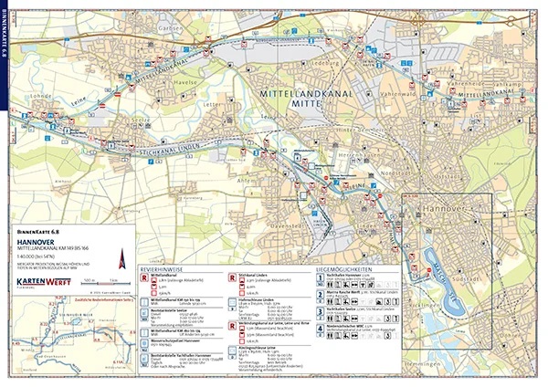 Der Kartenwerft Binnen-Atlas 6 bietet Ihnen eine präzise und zuverlässige Grundlage für die Navigation auf dem Mittellandkanal. Mit einem Maßstab von 1:40.000 enthält er sämtliche schiffbaren Wasserstraßen dieses Reviers und liefert damit eine exakte Orientierung für Ihre Törnplanung.