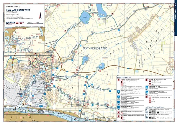 Der Kartenwerft Binnen-Atlas 8 ist die perfekte Navigationshilfe für alle Bootsfahrer auf der Ems und den Wasserstraßen in Friesland. Mit einem detaillierten Maßstab von 1:40.000 bietet er präzise Karten und umfassende nautische Informationen für eine sichere und entspannte Fahrt.
