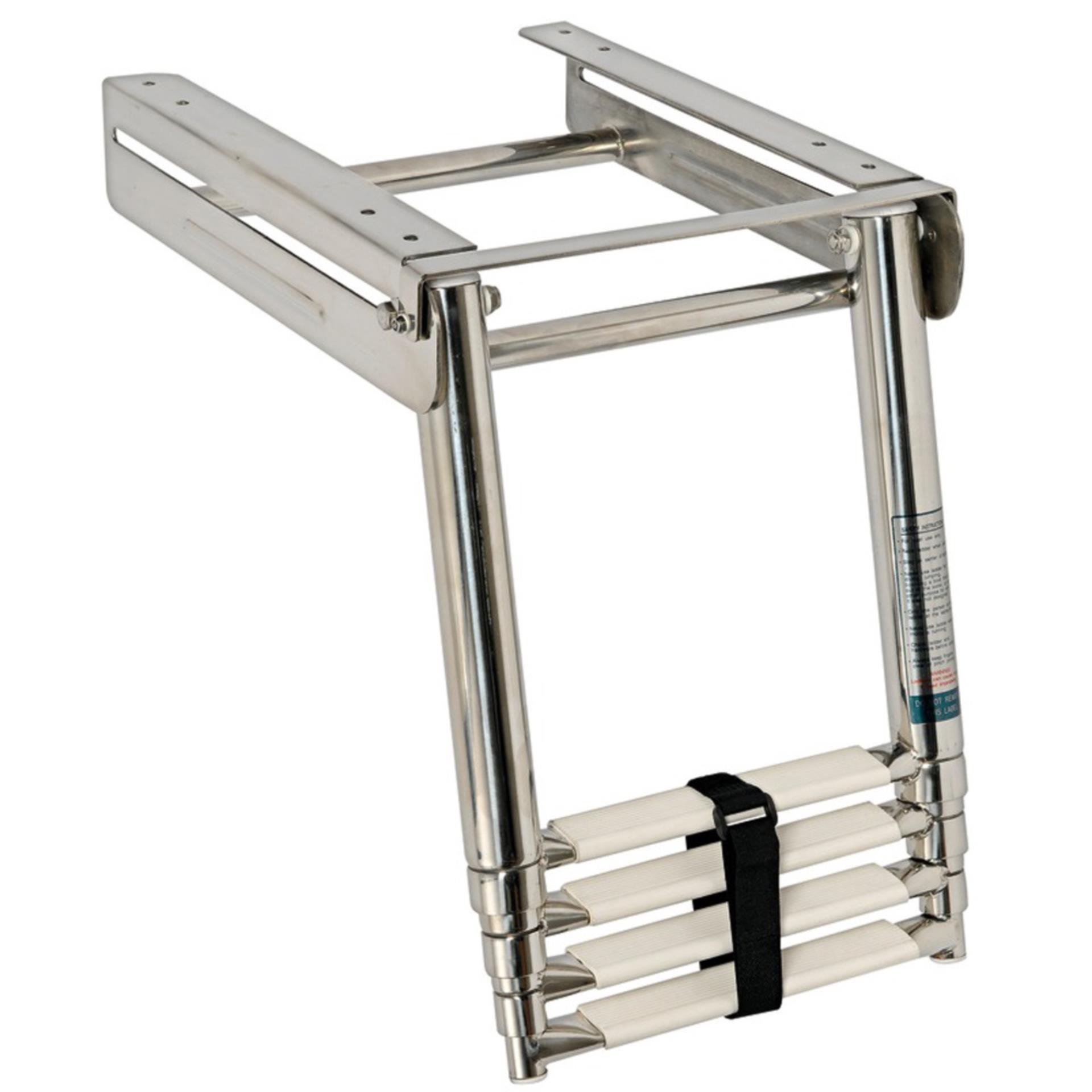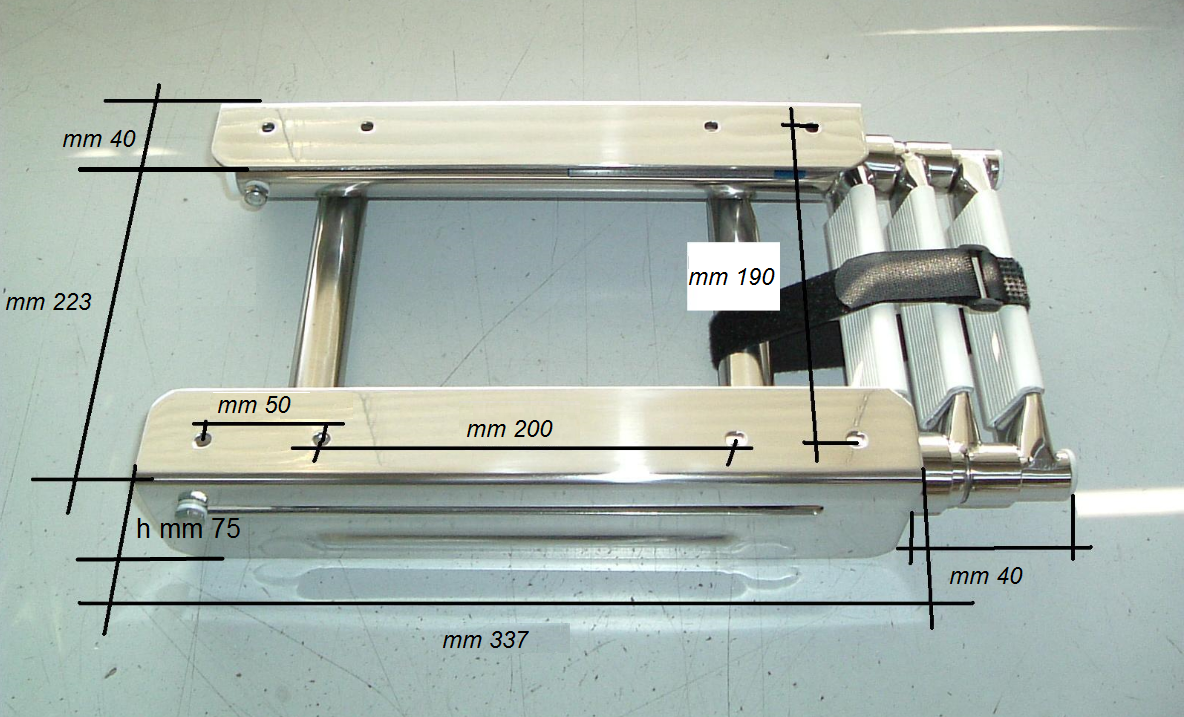 Die Badeleiter für Plattform in Kassette aus Edelstahl ist eine praktische Klappbadeleiter, die sich perfekt für die Montage unter der Badeplattform eignet. Ihre oval geformten Trittstufen sind mit einer Antirutschbeschichtung versehen, die für sicheren Halt sorgt, auch bei nassen Bedingungen. Diese Badeleiter ist besonders platzsparend, da sie in einer Kassette verstaut werden kann und bei Bedarf einfach ausgeklappt wird. Eine ideale Lösung für Schiffe und Yachten, die eine funktionale und stabile Leiter benötigen, die wenig Stauraum benötigt.
