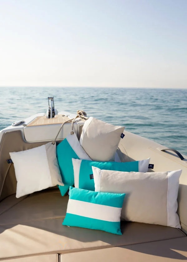 Dank des strapazierfähigen und pflegeleichten Materials lassen sich die Kissen mühelos reinigen. Sie sind ideal für Boot, Yacht, Garten oder Terrasse und kombinieren praktischen Schutz mit elegantem Design. Ob auf Sitzgelegenheiten an Bord, Gartenstühlen oder Outdoor-Loungemöbeln – die Kissen bieten ein komfortables und gemütliches Sitzerlebnis.