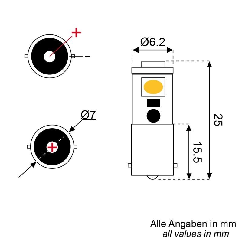 - Sockeltyp BA7s: Der BA7s-Sockel sorgt für eine problemlose Installation in der S-LED 12 Fassung (10-30V) und ermöglicht eine schnelle und sichere Verbindung.