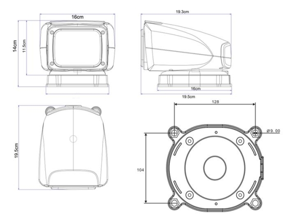 - Modell 150: Schnelle permanente Montage durch Befestigung des Fußes mit 4 Schrauben und Durchführen des Stromanschlusses (universelles, 30cm langes Kabel)