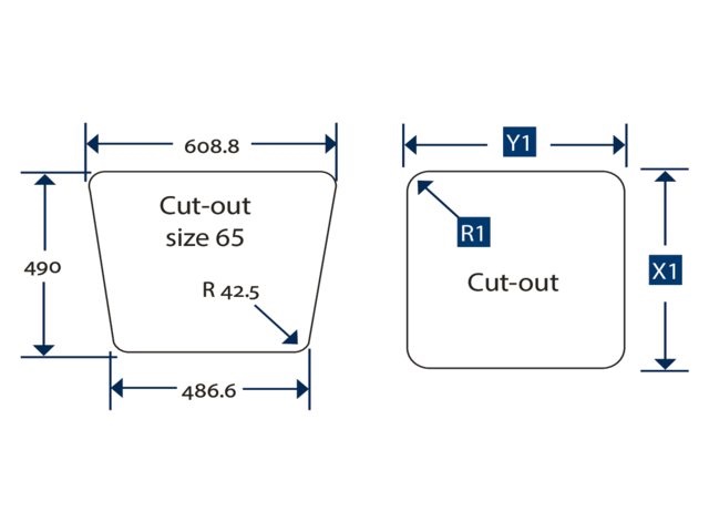 - Öffnungslänge (Y1): 608,8 mm