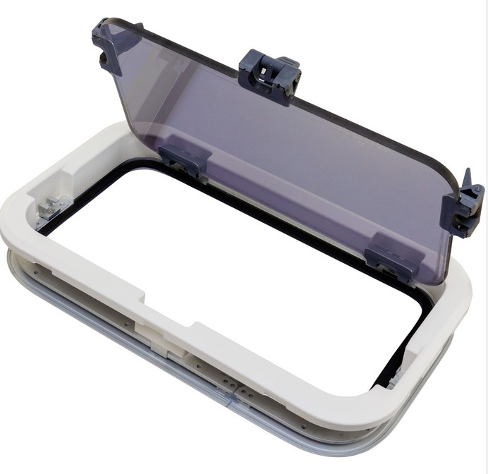 Die weiße Verkleidung aus robustem ABS-Kunststoff sorgt für eine langlebige, korrosionsbeständige Oberfläche und fügt sich harmonisch in das Interieur moderner wie klassischer Boote ein. Für zusätzlichen Komfort ist bei den meisten Größen ein integriertes Fliegengitter enthalten, das eine gute Belüftung ermöglicht, ohne Insekten ins Bootsinnere zu lassen (ausgenommen die Größen 4L und 4R).