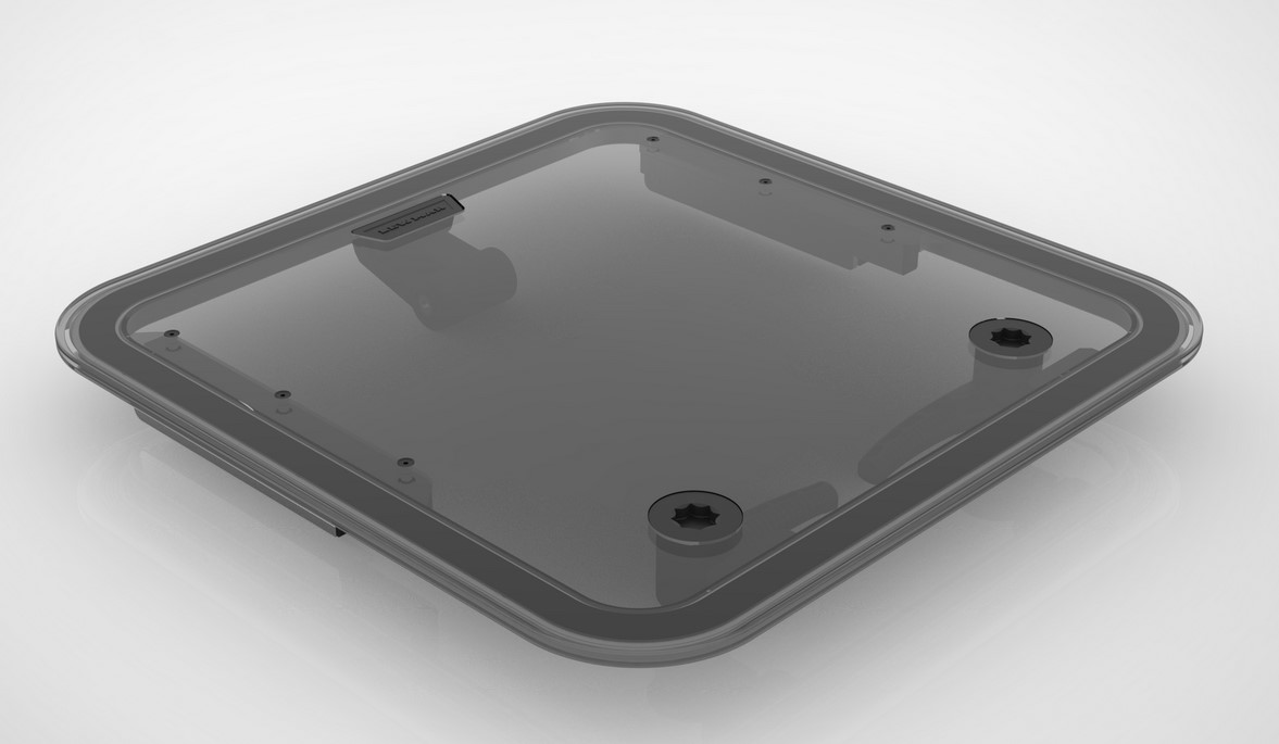 Hergestellt aus grauem Acrylglas, ist der Lukendeckel sowohl leicht als auch robust. Mit einer Aufbauhöhe von nur 10 mm über Deck überzeugt die Luke durch ein besonders schlankes, elegantes und unaufdringliches Profil.
