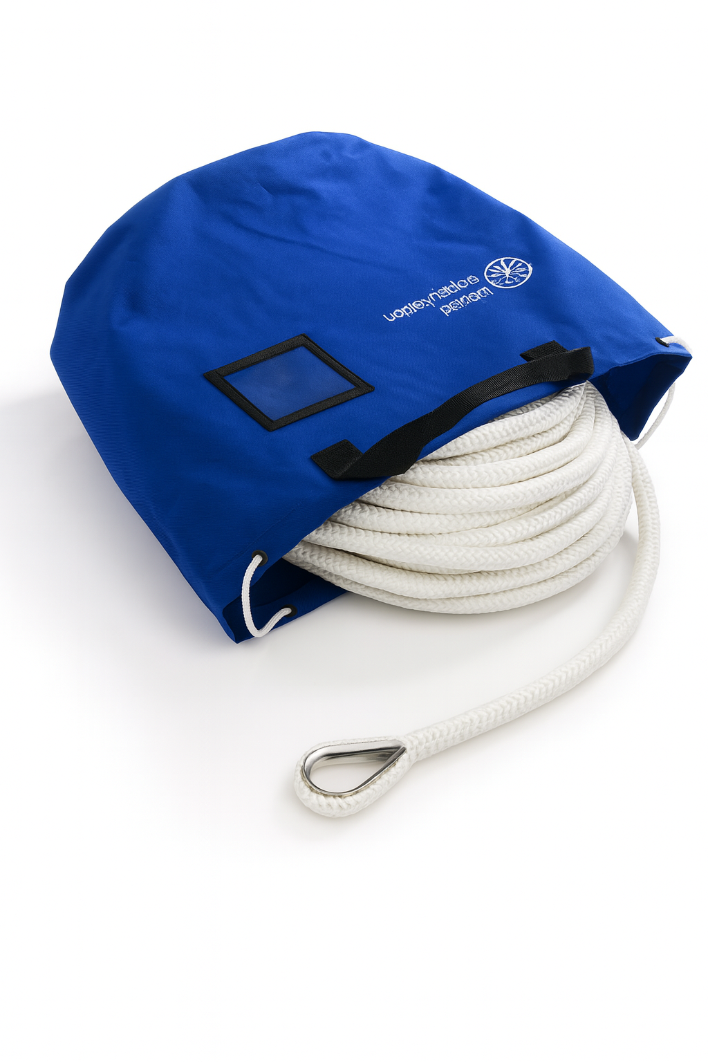 Eine eingespleißte Niro-Kausche mit sauberem Takling sorgt für zuverlässige Verbindung zum Anker. Geliefert wird die Leine im hochwertigen, blauen Liros-Segelsack, der Ordnung an Bord schafft und die Leine vor Verschmutzung schützt.