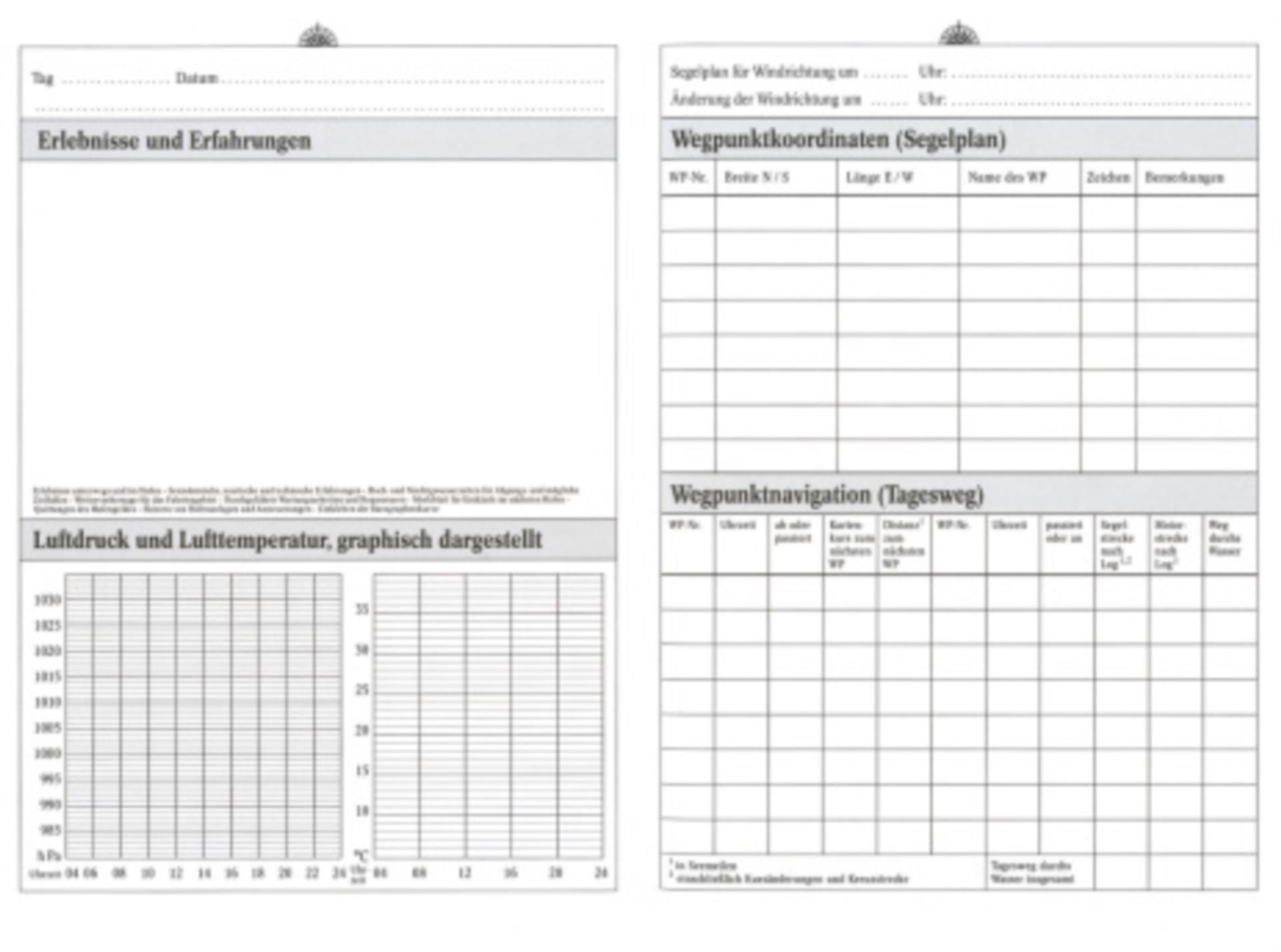 - ✅ Übersichtliche Eintragungen – für Wetter, Position, Crew & Törn-Details