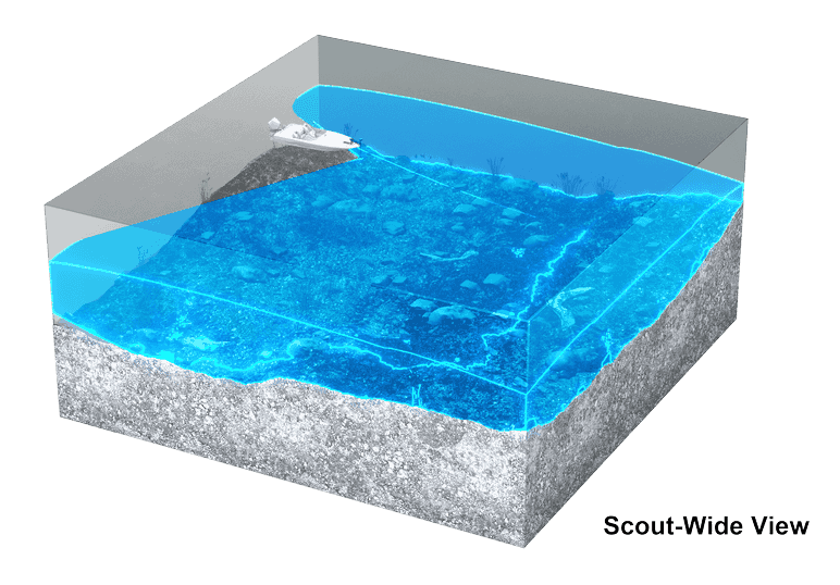 - Scout Weitblick: Dual-Scout-Modus für die doppelte Live-Echolotabdeckung rund um das Boot.