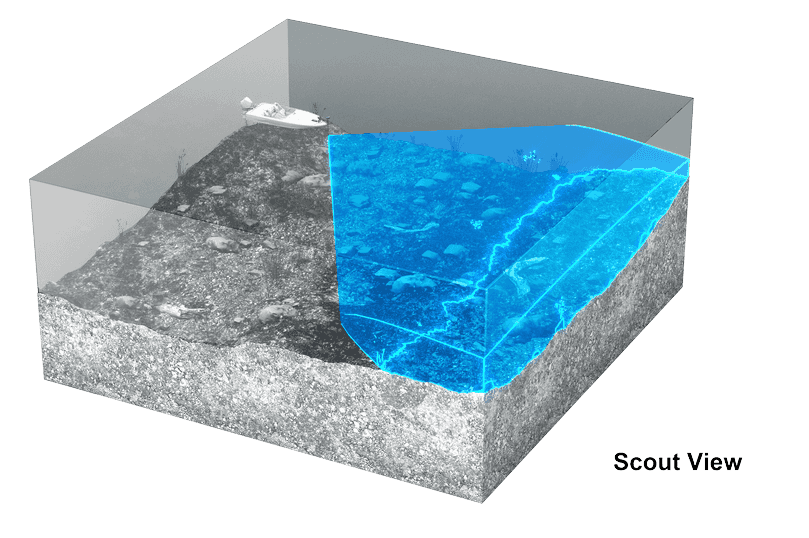 Überwachen Sie mit den Vorwärts-, Abwärts- und Scout-Modi mehrere Ansichten gleichzeitig und aktivieren Sie die zusätzlichen 180°- und Scout Wide-Ansichten, um Fische und Köder vor dem Boot effektiver zu verfolgen.