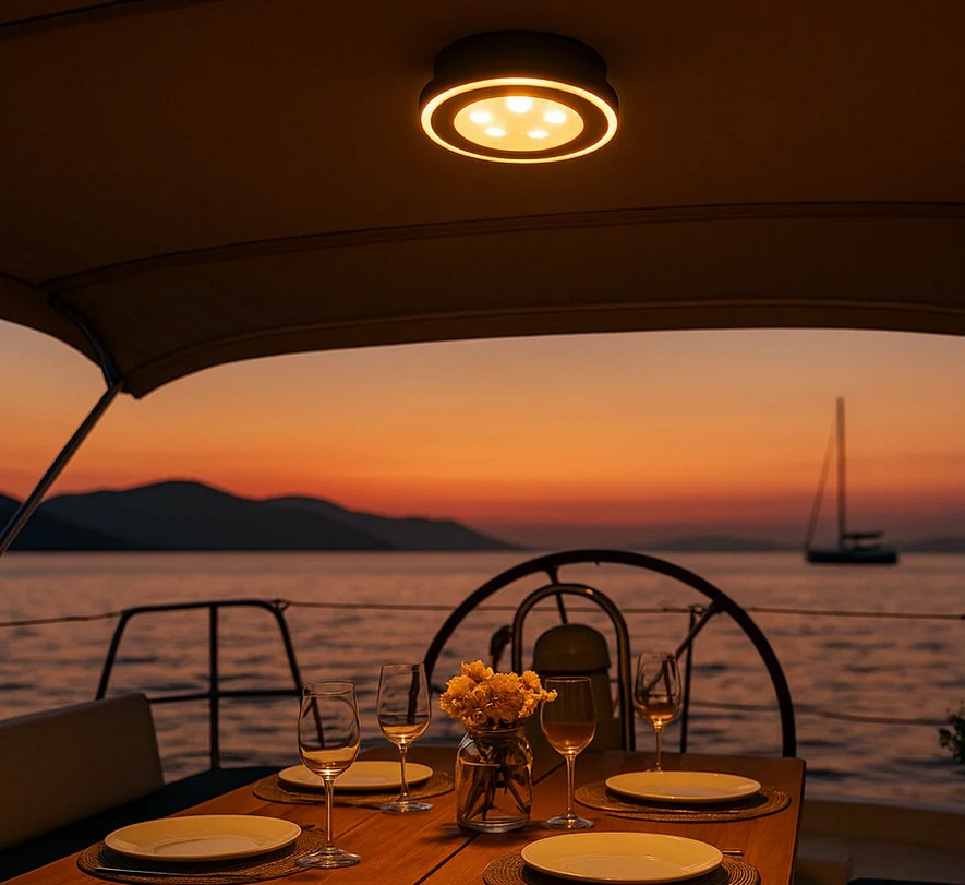 LUMAGSOLAR ist eine echte Innovation im maritimen Bereich: Die weltweit erste LED-Lampe, die Solarenergie kabellos durch Stoff überträgt. Speziell entwickelt für den Einsatz an Bord, verbindet sie modernes Design, maximale Flexibilität und höchste Sicherheit – ganz ohne Bohren, Schrauben oder störende Kabel.